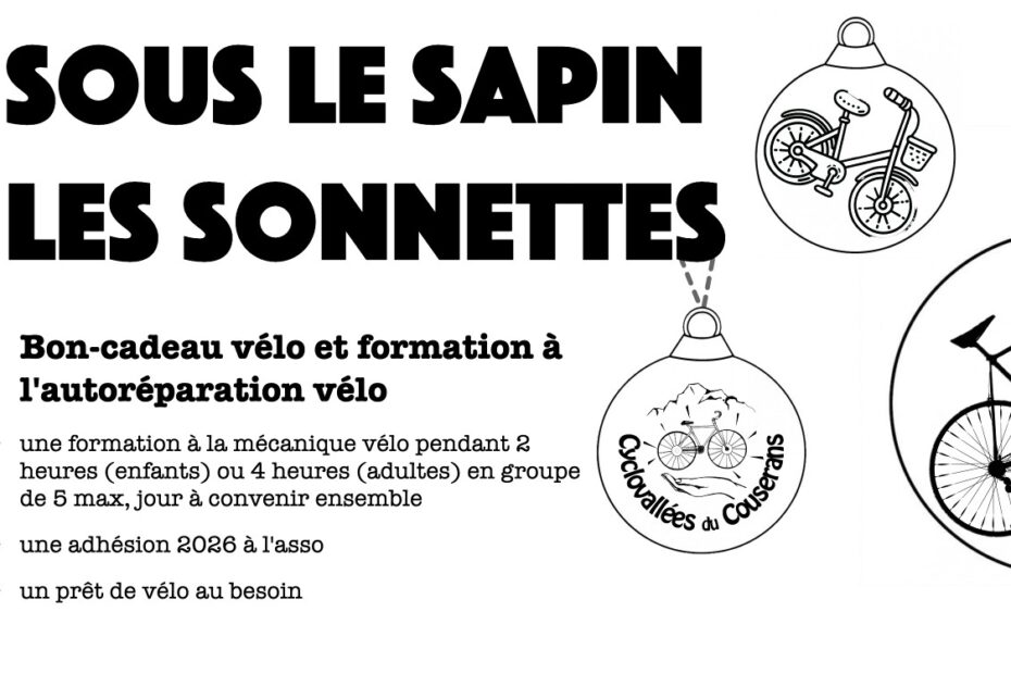On nous demande souvent : est-ce que vous faites des cours de mécanique vélo ? Il y a eu Les… Lire la suite »Sous le sapin les sonnettes ou offrir un cours d’autoréparation vélo !